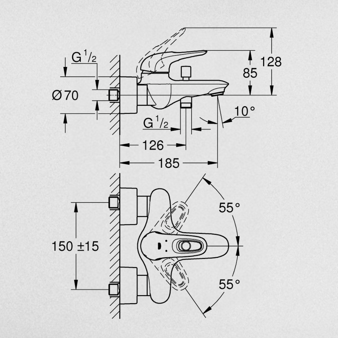 خلاط بانيو يوروستايل 33591003 بذراع واحد للتحكم في المياه اللون كروم من جروهي