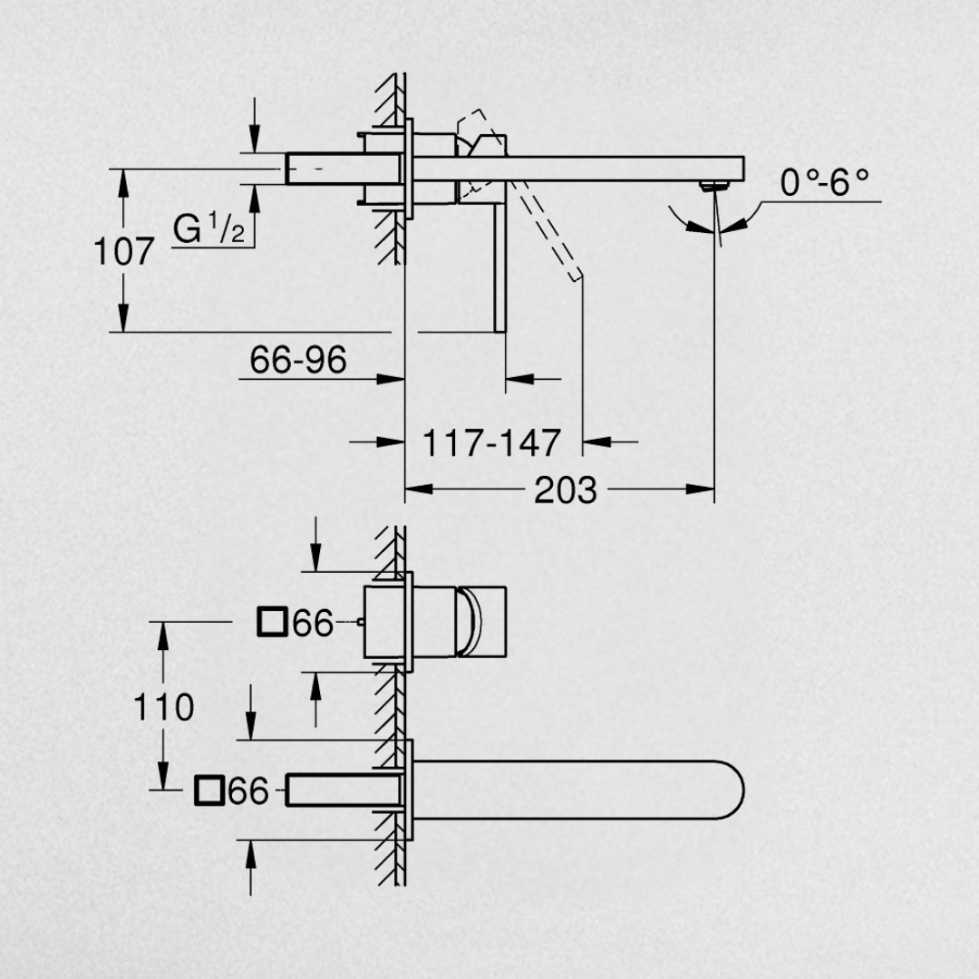 خلاط حوض حمام دفن حائطي جروهي بلس قلب سيراميك ذو ذراع واحد للتحكم فى المياه, اللون كروم من جروهي كود 29306003