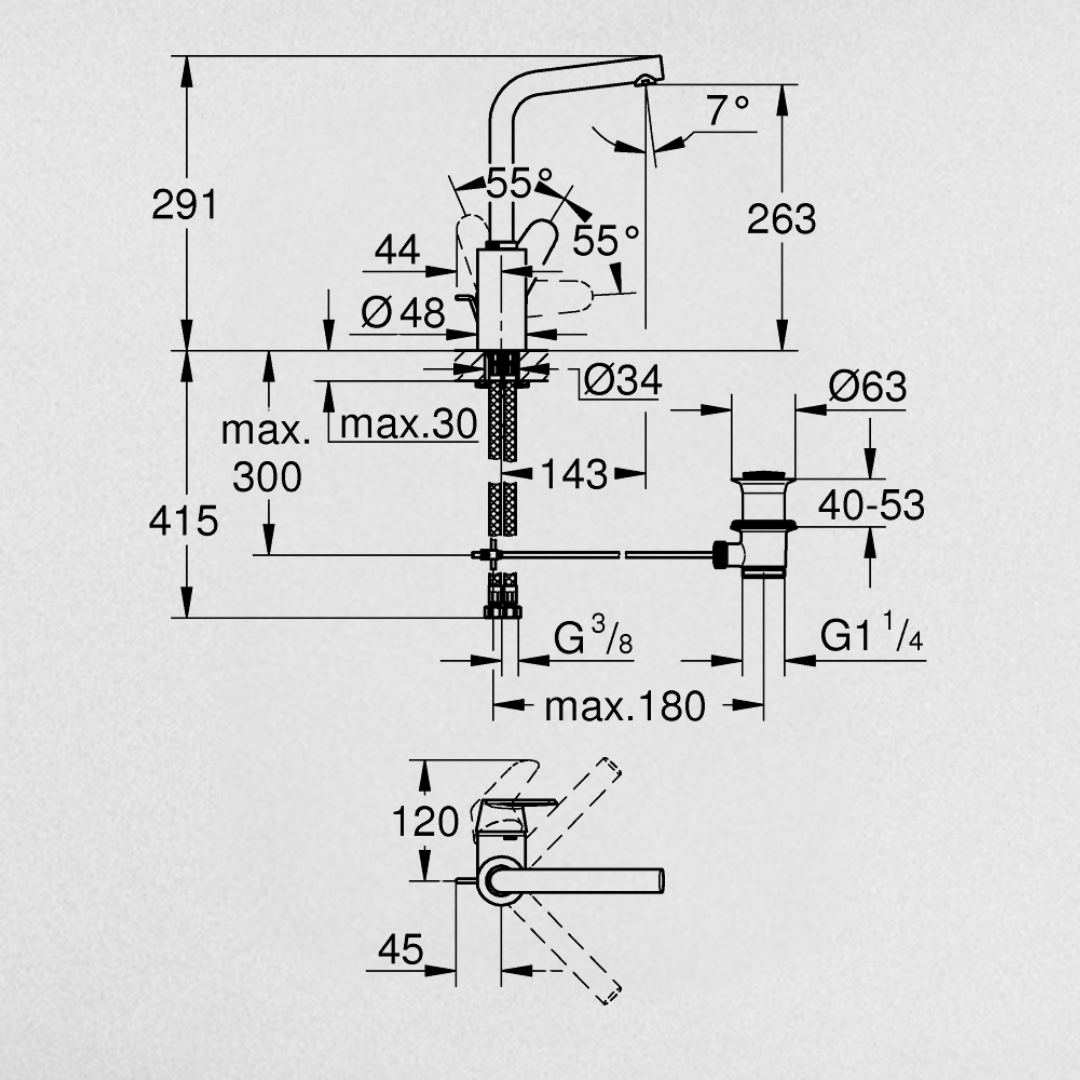 خلاط حوض يوروديسك كوزموبوليتان عالي الطول نص بوصه
