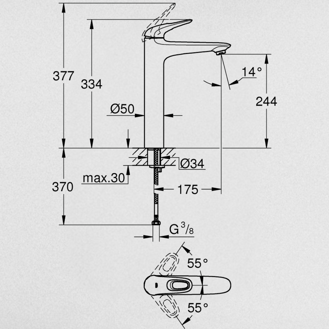 خلاط حوض حمام عالي يوروستايل 23570LS3 بذراع واحد اللون للتحكم في المياه ابيض من جروهي