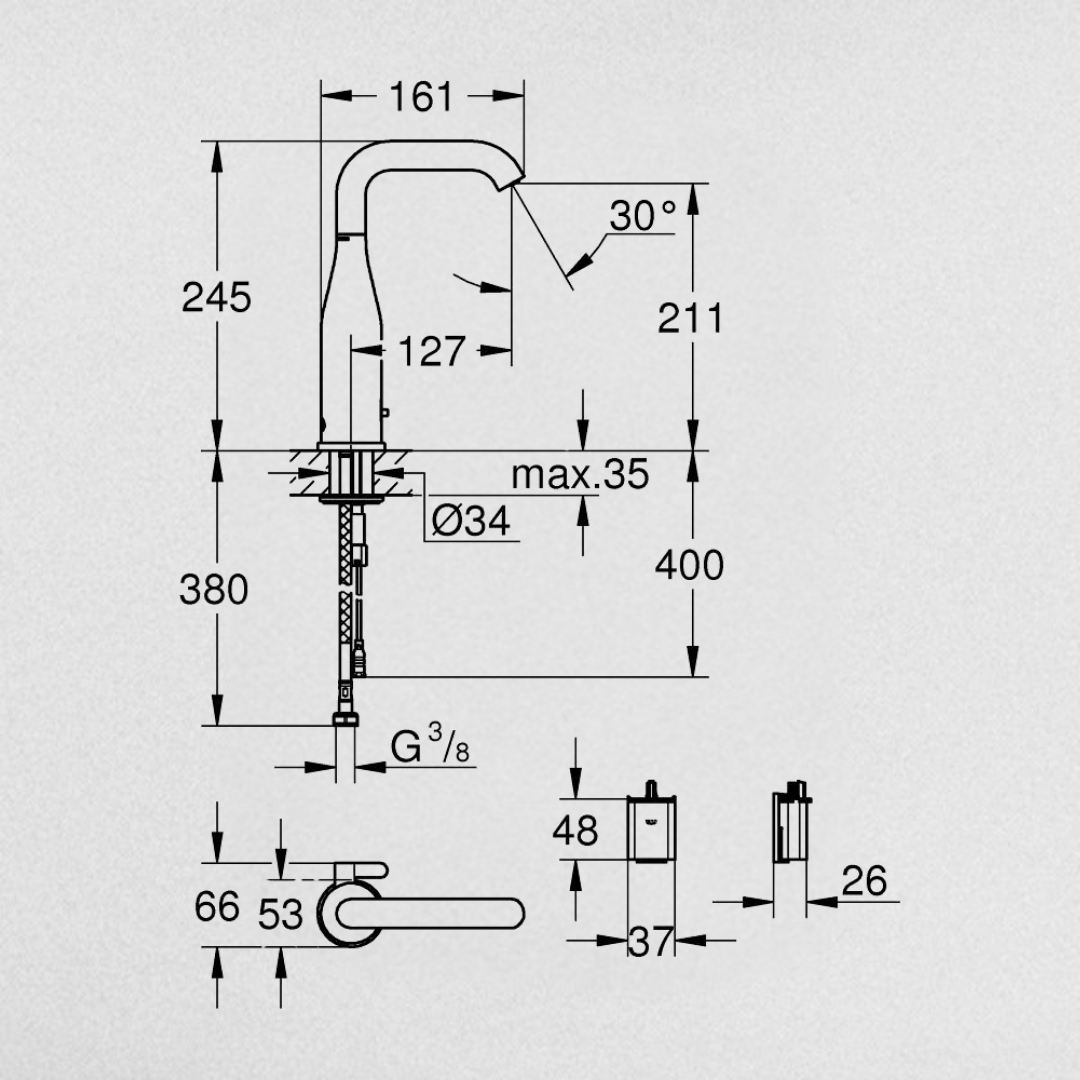 خلاط حوض حمام جروهي أيسانس قلب سيراميك بالاشعة تحت الحمراء للتحكم فى المياه, اللون ذهبي من جروهي كود 36445GN0