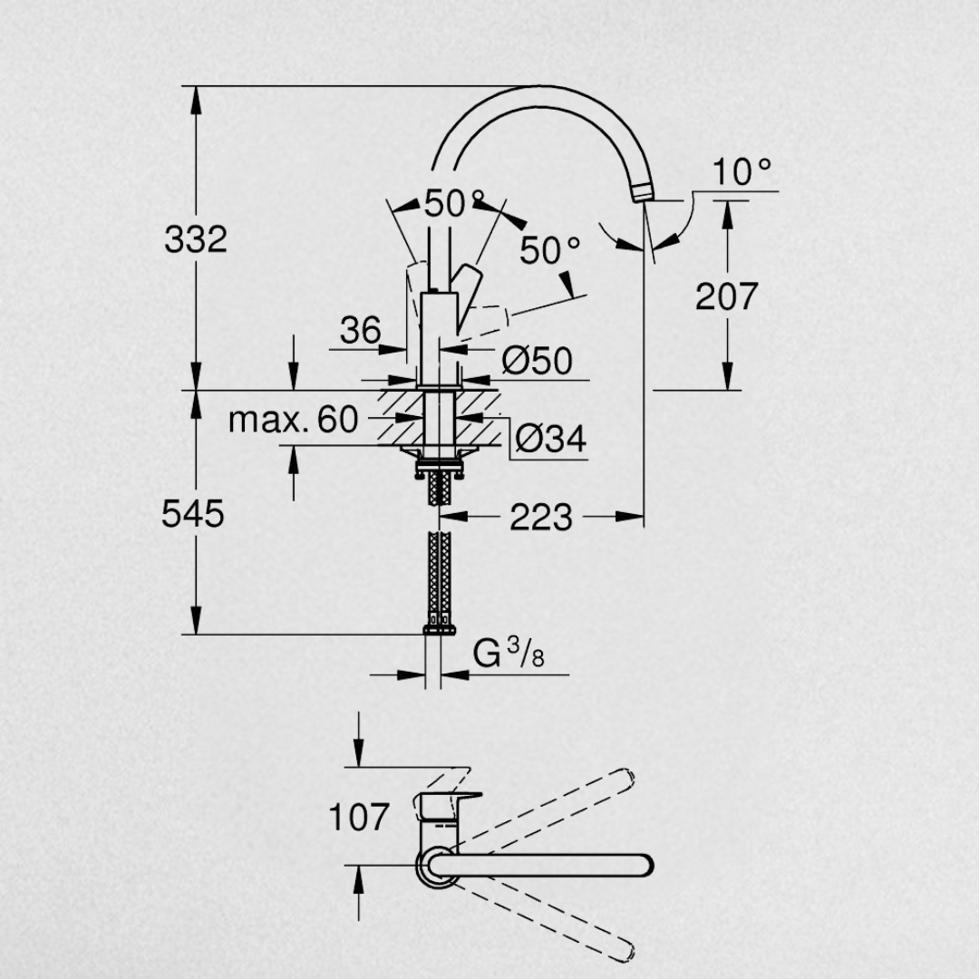خلاط حوض مطبخ باو ادج 31367001 بذراع واحد للتحكم في المياه اللون كروم من جروهي