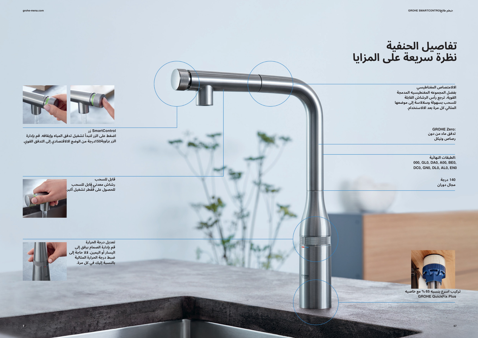 - الإرساء المغناطيسي GROHE يضمن السحب السهل والإرساء السلس لرأس الرذاذ للعودة إلى وضع البدء