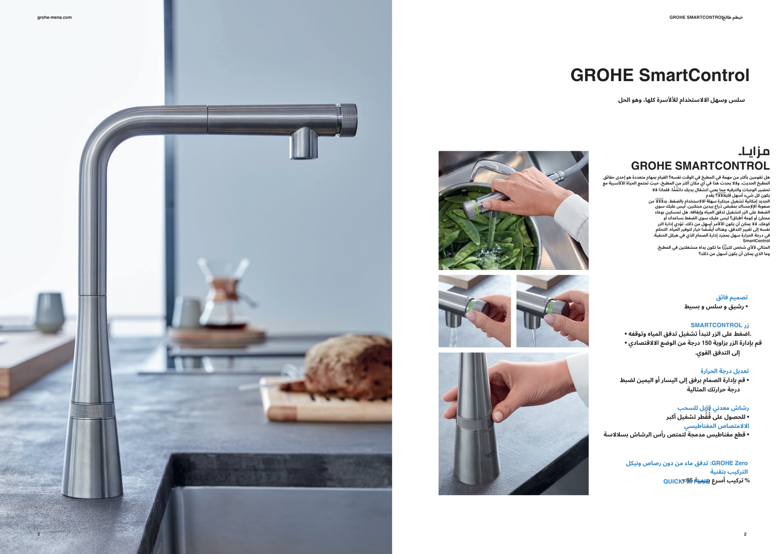 - GROHE SmartControl push for ON-OFF, turn for volume adjustment from water saving eco mode to Full Flow
