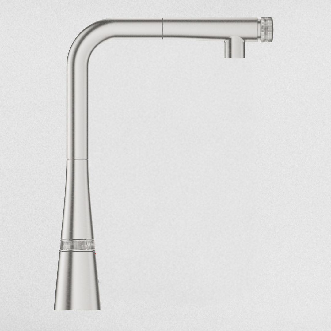 خلاط حوض مطبخ زيدرا سمارت كنترول 31593DC2 بزرار للتحكم في المياه اللون سوبرستيل من جروهي