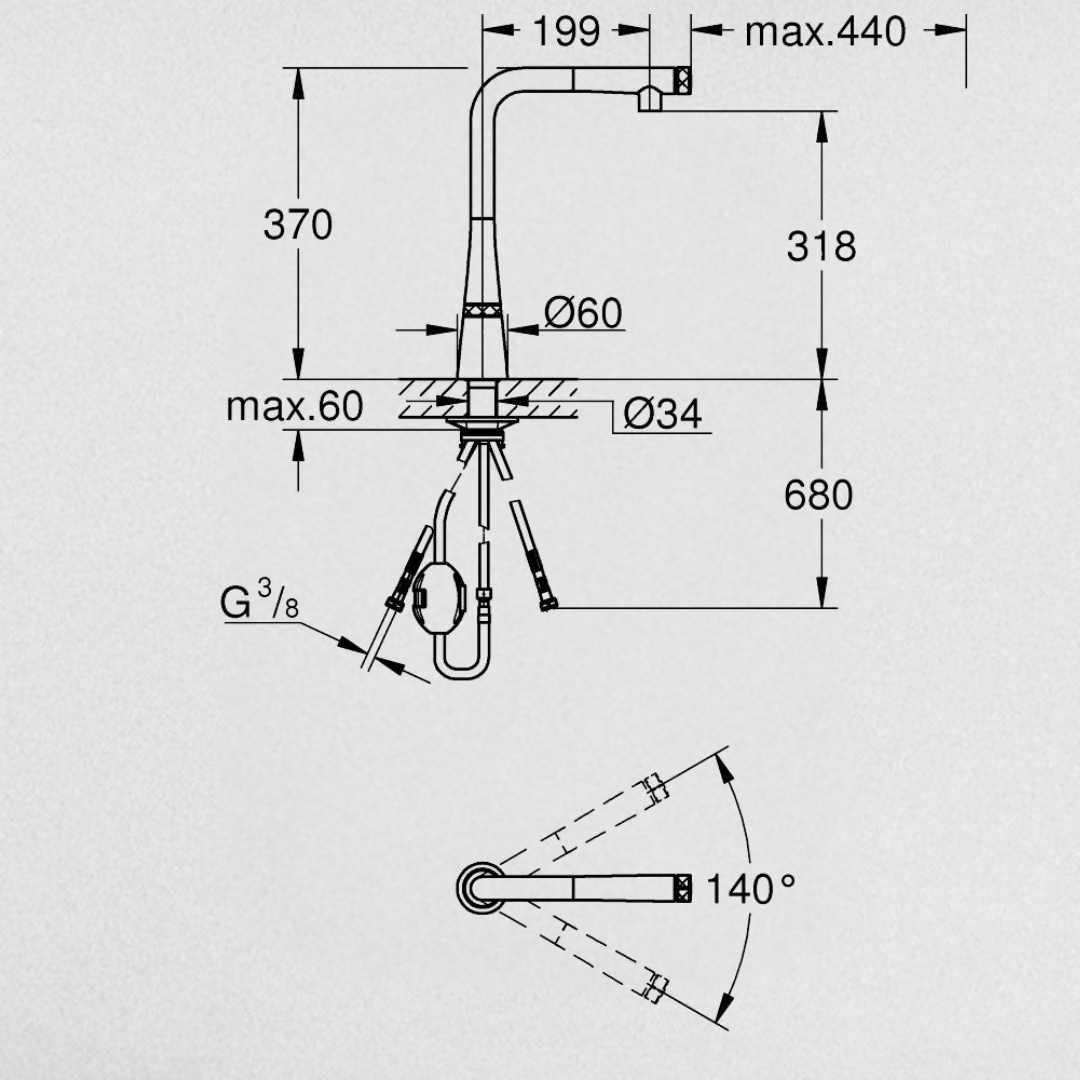 • الإرساء المغناطيسي GROHE يضمن السحب السهل والإرساء السلس لرأس الرذاذ للعودة إلى وضع البدء