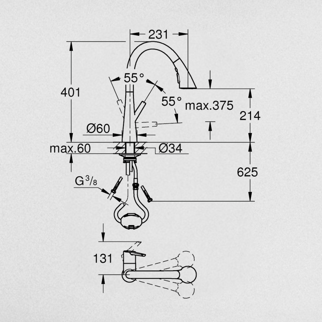 - الإرساء المغناطيسي GROHE يضمن السحب السهل والإرساء السلس لرأس الرذاذ للعودة إلى وضع البدء