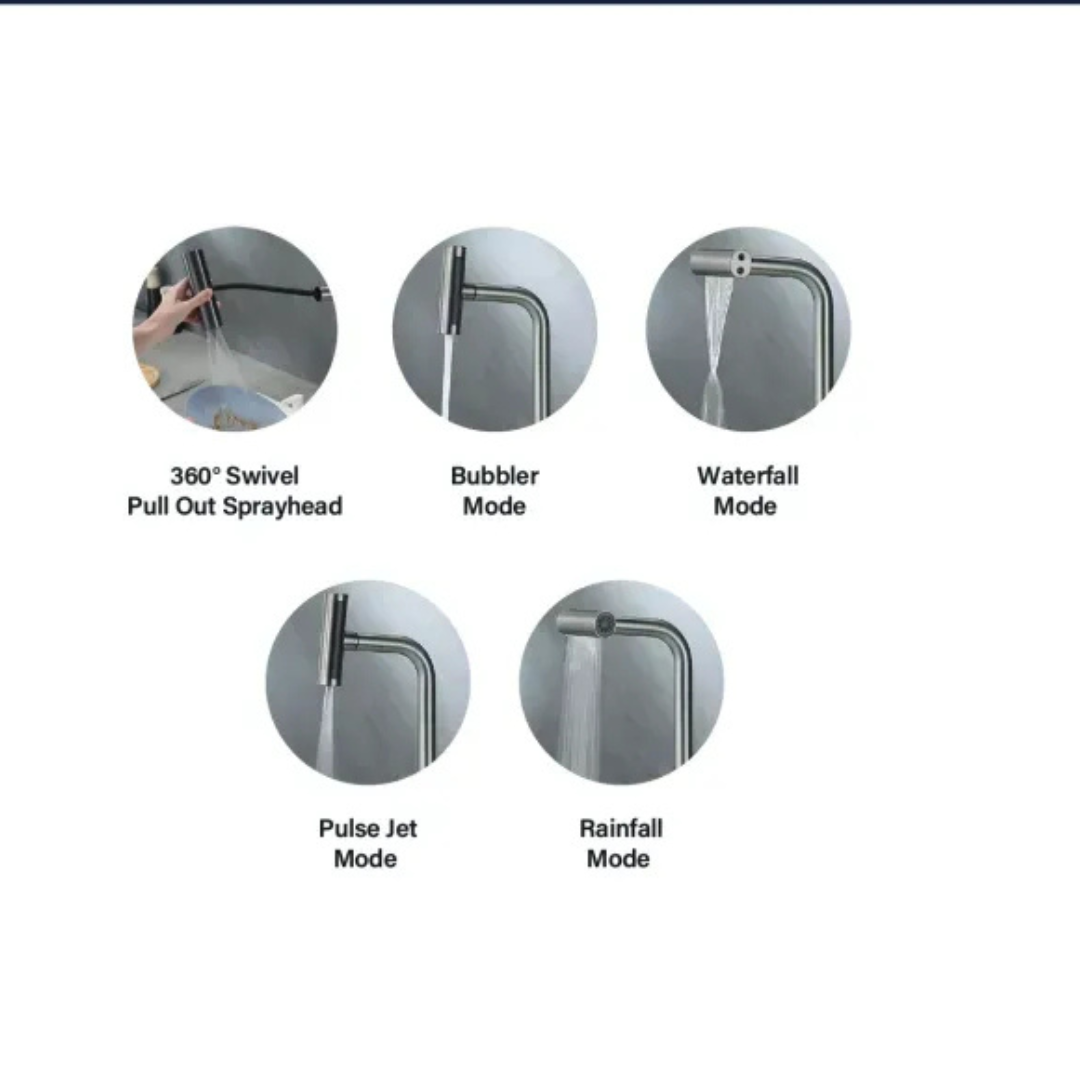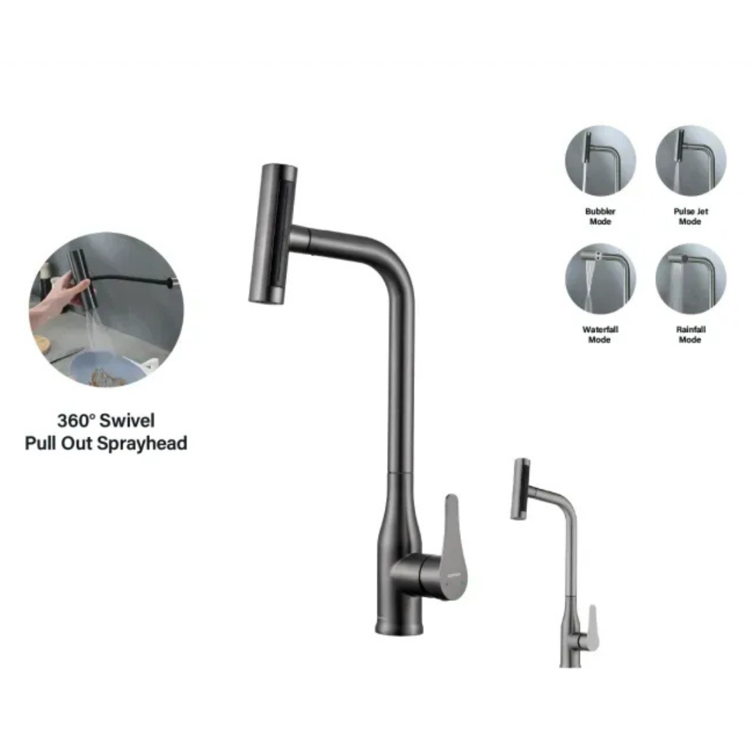 خلاط حوض مطبخ شيف شلال علوي وشداد YF-1 لون جراي مط من هانز