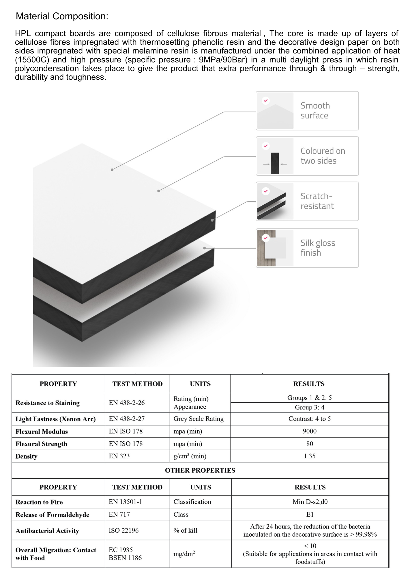 القاعدة والظهر: من HPL Compact المقاوم للمياه والخدوش.